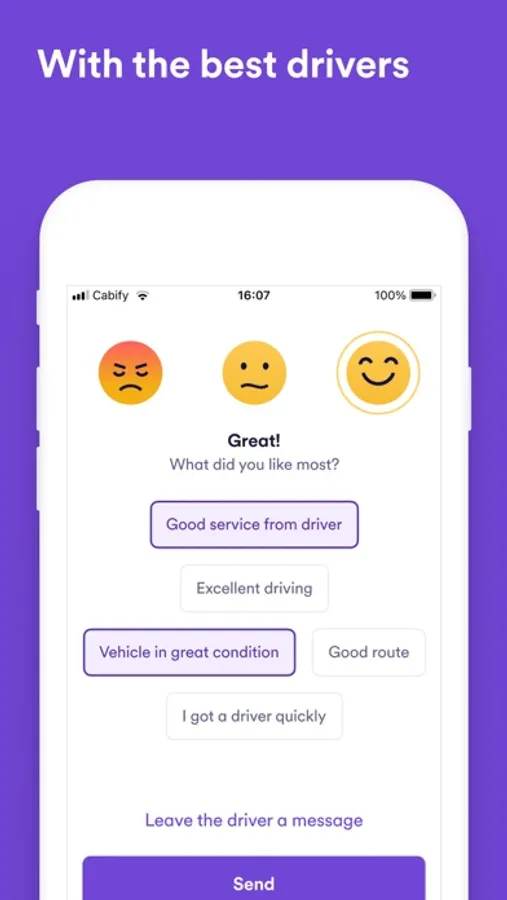 - The best drivers in the market. In Cabify the criteria to accept drivers on our platform is the most selective around and all drivers go through and on-boarding process.