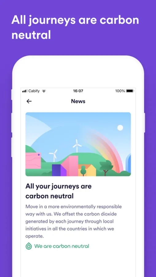 - Carbon neutral journeys. We offset all the CO2 that your journeys generate. Get around more environmentally responsibly!