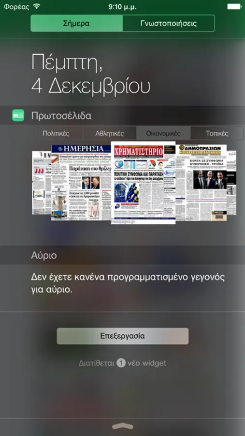 • Αγαπημένα: Κρατήστε πατημένο το δάκτυλό σας σε μια εφημερίδα για να έρθει πρώτη