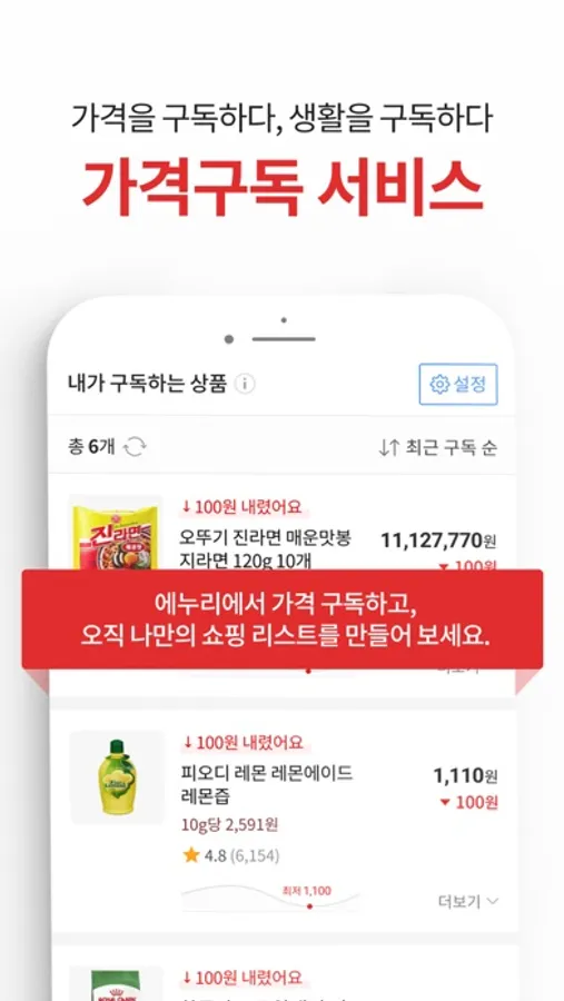 - 가격 구독상품의 최저가와 가격 추세 정보를 실시간으로 제공합니다.