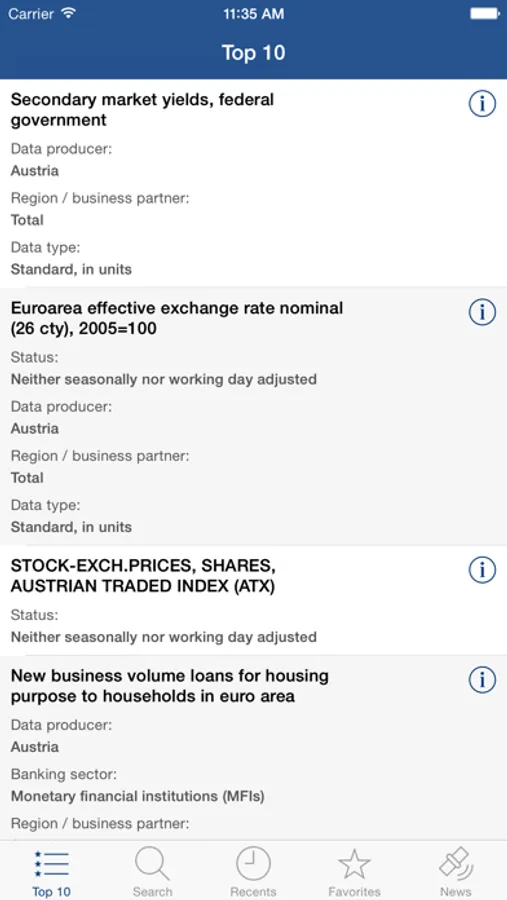 Info: At the initial launch the app creates a cache for the Top-10, Favorites and News. Due to this the app provides a much smoother experience.