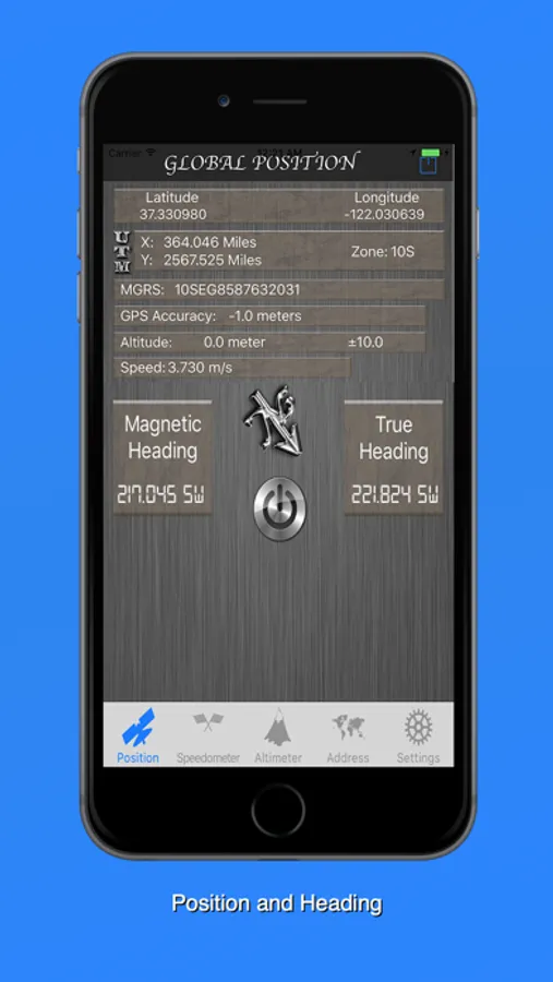 Global Position includes Compass - Course - Speedometer - Altimeter - Course - Flashlight.