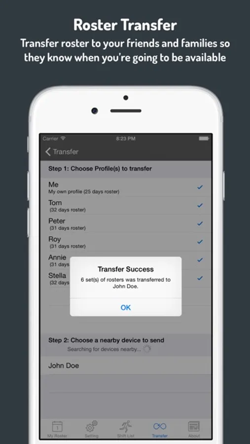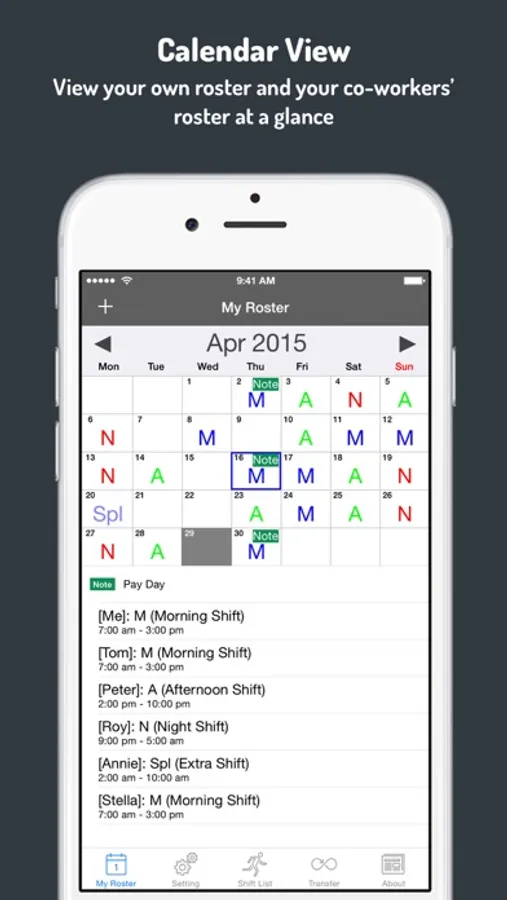 You can also share your roster with your friends and families so they know exactly what date you're free and what date you'll be home late.