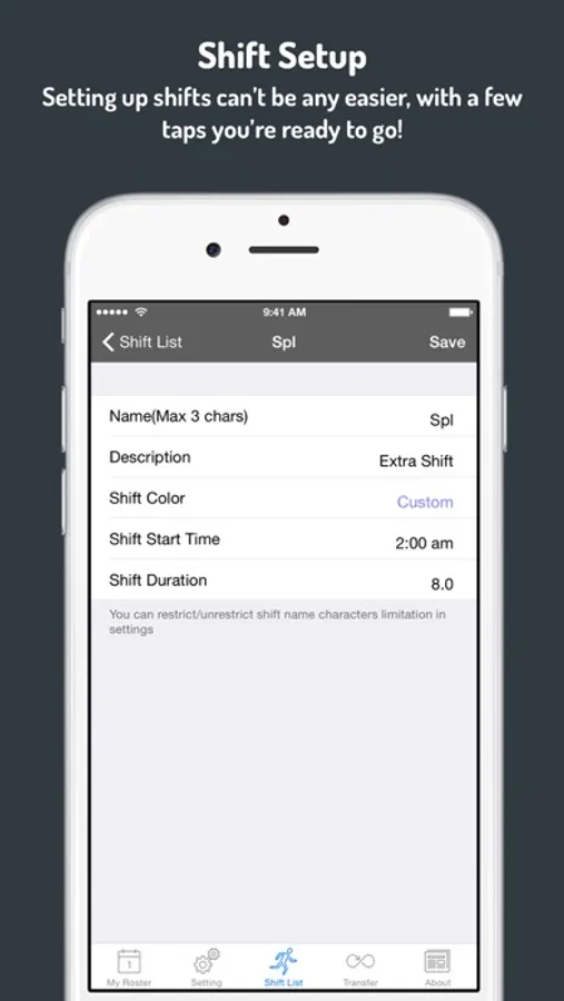 Simple Roster is an easy-to-use electronic rostering app that makes your everyday life easier. With Simple Roster, you never have to bring a paper roster around, and you can simply check your roster anywhere as long as you have your phone around. Simple Roster is so simple that you will know how to use it in a minute. Using the app is simply intuitive, you will have your roster setup in the app in the first 5 minutes. All rosters and shifts are stored offline in your phone, which means even though you are in a remote area that has no connection, Simple Roster still operates. Simple Roster is designed to be simple and it gets you your information in the least amount of time and least amount of steps.