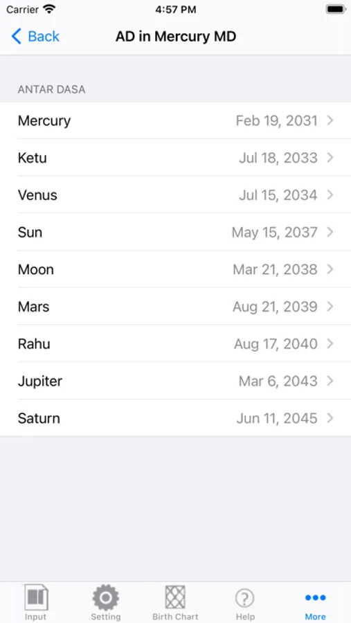 - Transits from Dasa/Antar/Pratyantar by simply clicking on the period.