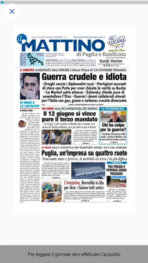 Puoi scegliere l’edizione del mese, o un’edizione dell’archivio, e consultare gratuitamente la prima pagina o acquistare l'edizione completa. Sfogliando le pagine del magazine, ingrandendo i contenuti, ruotando il dispositivo, sarai libero di leggere in piena comodità e nella modalità preferita.