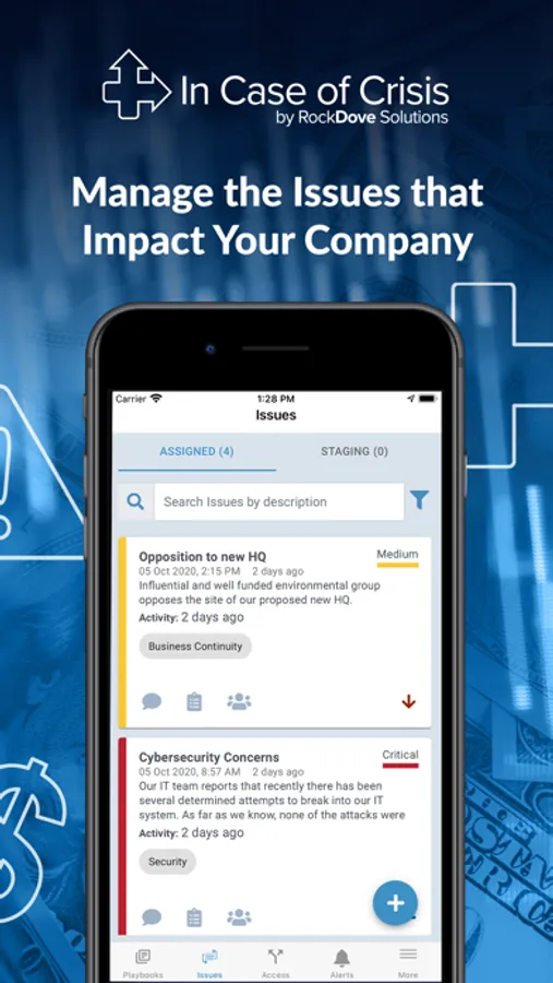 In Case of Crisis is a purpose-built platform that helps your organization prepare for, respond to, and resolve emerging issues and crises by connecting your cross-functional teams and stakeholders to actionable playbooks, collaborative workflow, and powerful communication services.