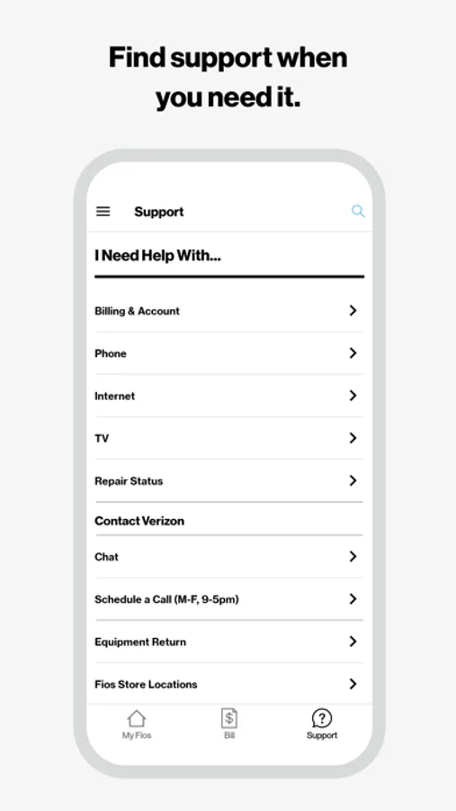 • Get support when you need it, with self-help tools that enable you to troubleshoot service issues or chat with us directly.