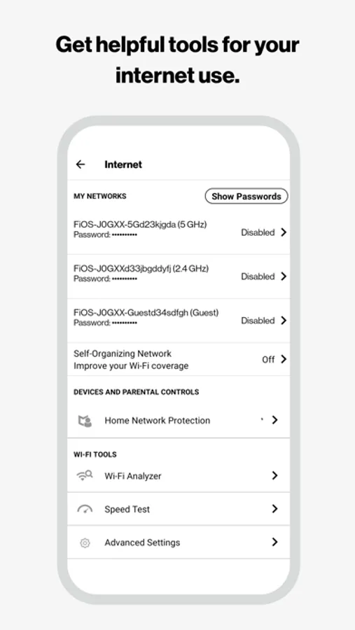 • Access internet tools that allow you to test your home network speed, set parental controls, configure your WiFi and more.