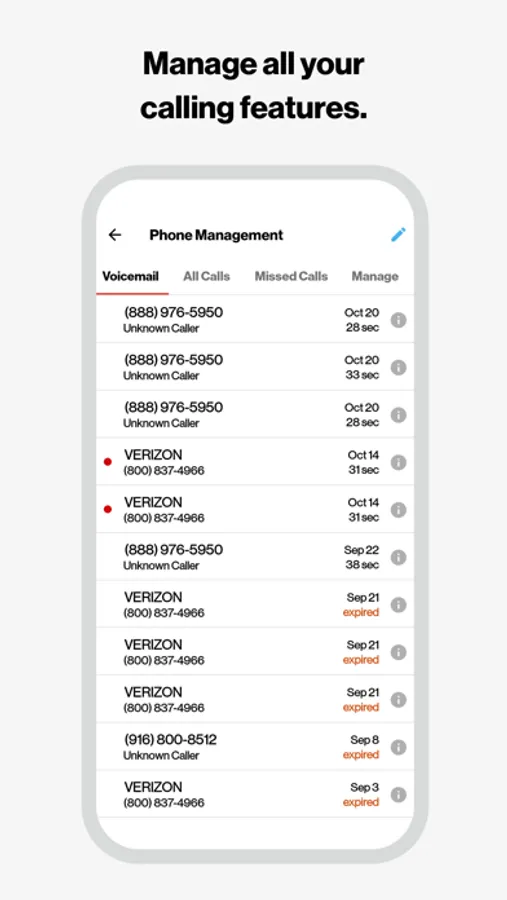 • Review your call logs, listen to voicemail and manage all your calling features.