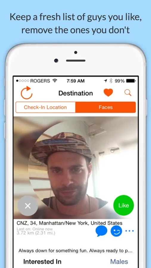 - "Like" or "dislike" people and keep a fresh list of only those people who interest you.