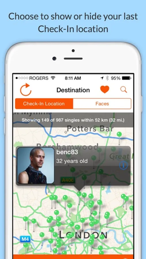 - 100% location-based, 100% GPS dating.