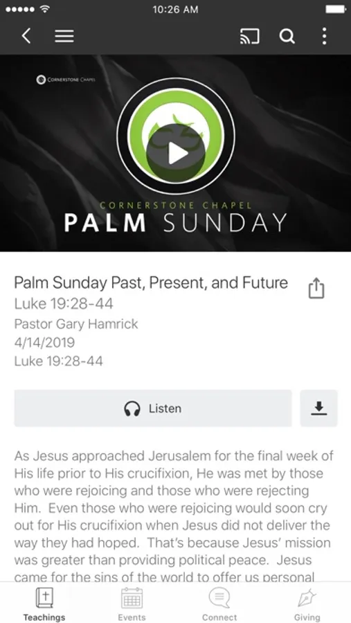 Download the Cornerstone Chapel mobile app to view our weekly services streamed live to your mobile device, access recent teachings, read about upcoming events, and more!