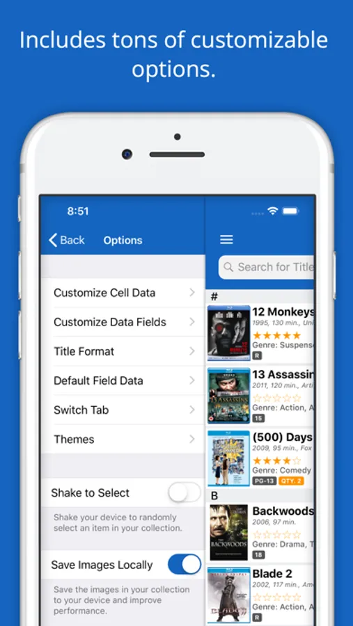 • Store up to four pictures per movie, including front, back, and inside images of movies.