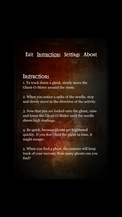 Use Ghost-O-Meter to scan your building for paranormal activity. Get a creepy feeling at a certain spot in the woods? Test it for ghosts. Sometimes even the safest spots could be filled with spirits. You don't know until you test it. Download the Ghost-O-Meter today and see if you can find any ghosts. This app was created for your entertainment, and while we can't guarantee true ghost metering/locating functionality, it definitely has an uncanny ability to give unexplained feedback.