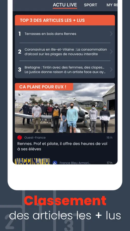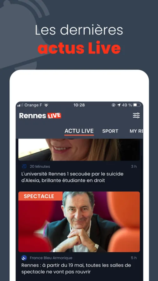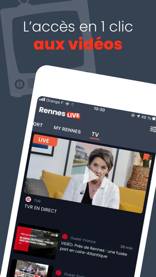 • Accédez aux dernières informations en temps réel à travers nos rubriques thématiques : Actu Live, Sport, My Rennes, TV.