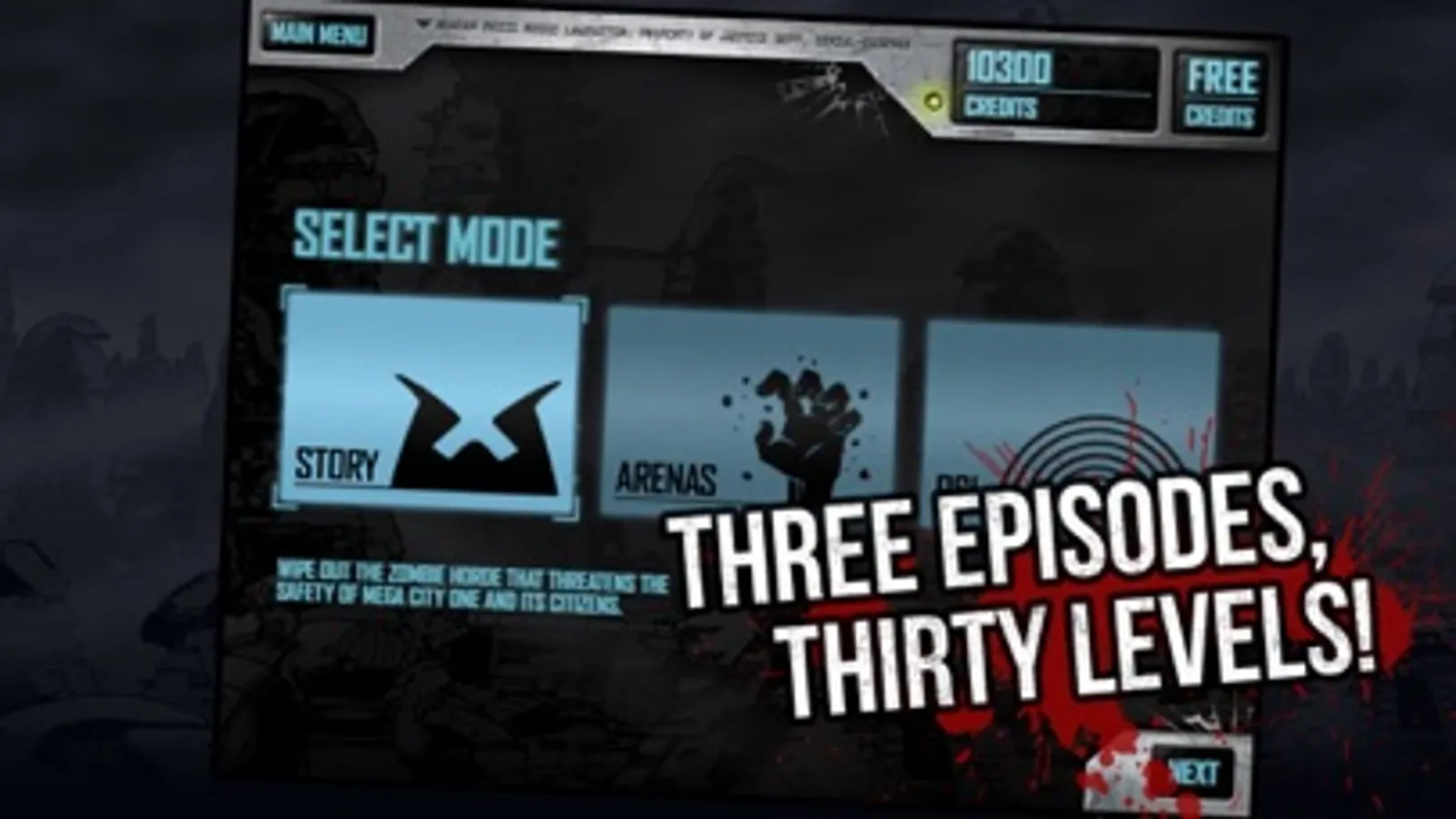 Earn stars and commendations based on performance. Ensure your Law meter is kept to maximum at all times by eliminating zombies, collecting shields and avoiding damage. Watch your ammo count as you blast through waves of attacking undead. When the going gets tough, upgrade your Lawgiver or try the Spitgun, Scattergun or Hi-Ex Launcher. Immerse yourself in a future world where the extreme is the norm!
