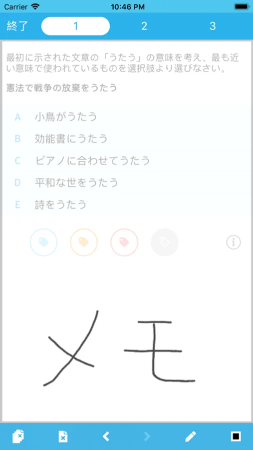 選択肢の消去や、問題を解く過程をメモに残すことができる!