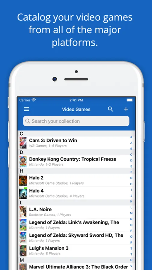 iCollect Video Games is the #1 app on the Apple App Store for managing your video game collections and inventory. This app works on all device sizes and syncs directly with our iPhone, iPad, Mac apps, as well as our apps on other platforms. Scan in or search our database for any video game you own or want and add them to your lists. Full of incredible features!