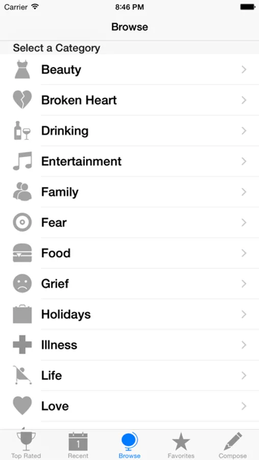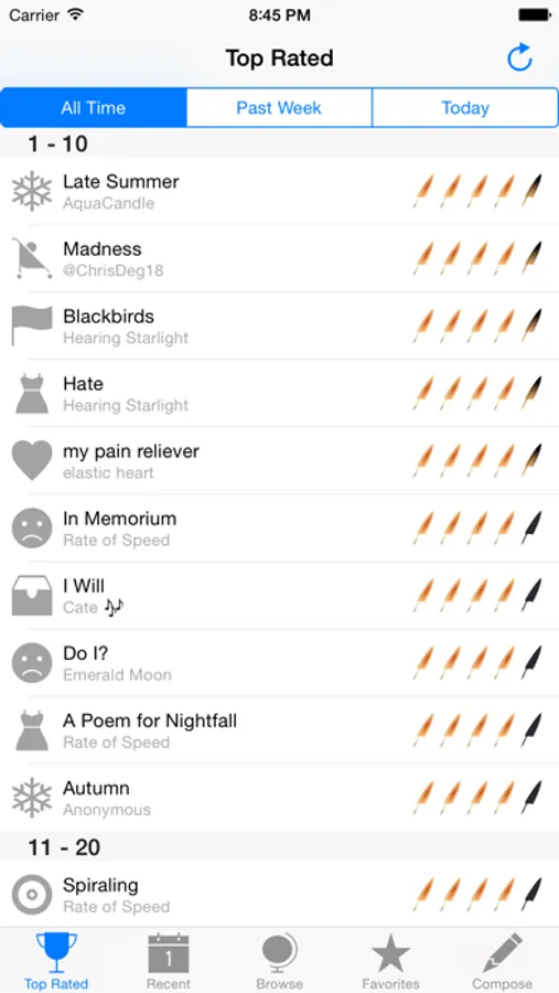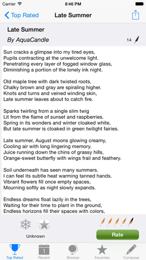 * Browse user submitted poems by rating, category, and more *