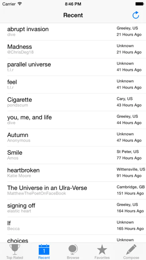 * Read thousands of poems from users around the world *