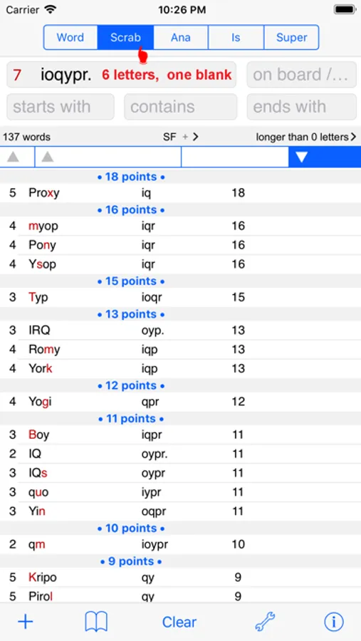 Solve crossword puzzles, cryptograms, Wordfeud, Scrabble™, or just check your spelling. Sort by word length, alphabet or score to find not just the longest words, but the words with the highest score!