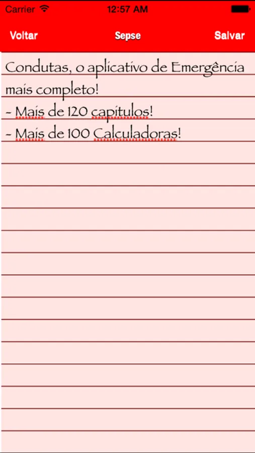Quem trabalha na LINHA DE FRENTE sabe a necessidade de ter acesso fácil a informações CONFIÁVEIS , CONCISAS e COMPLETAS. O aplicativo CONDUTAS EM EMERGÊNCIA foi feito pensando em VOCÊ!