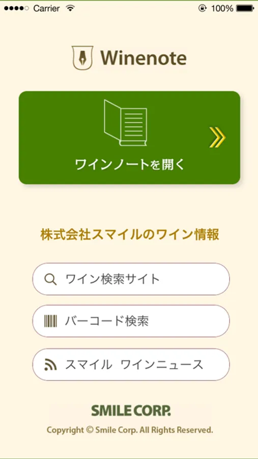ワインノートは 「ワインで生活を楽しくする」 を キーコンセプトとする株式会社スマイル(以下、当 社)が提供する無料アプリです。