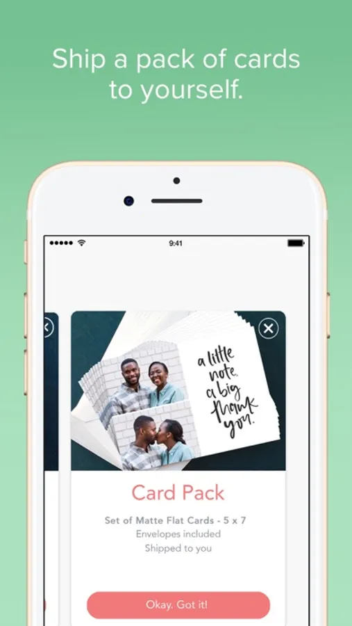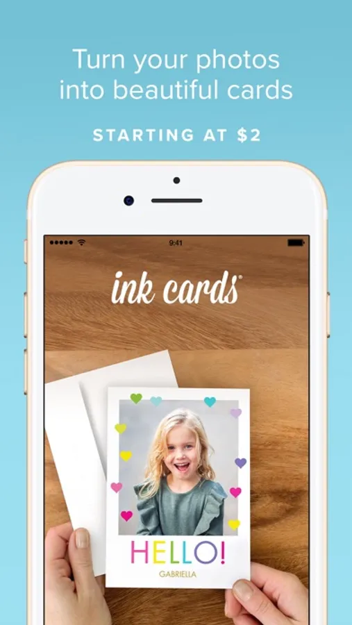 Ink Cards are printed on thick, glossy 5x7-inch cardstock at a resolution of 300 dpi. (That’s printing-nerd-speak for “super detailed on really nice paper.”) And they cost just $2 each (with free postage)! Upgrade from postcard-style to a premium card to mail a thicker, matte card in an envelope. You can even make your card extra special by adding a gift card for virtually any special occasion! Choose from dozens of brands and restaurant gift cards. Purchase with Apple Pay, PayPal or scan your credit card at checkout.
