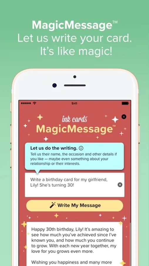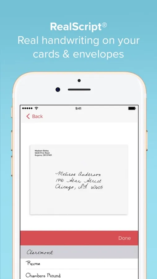 Mail REAL one-of-a-kind cards without a trip to the store! Create cards right from your iPhone or iPad and send them straight to your lucky recipient’s mailbox. And now, you can let us do the writing with our newest feature, MagicMessage™! Just tell us their name, the occasion and other detail you’d like and watch the magic happen! For a more personalized touch, use our NEW RealScript® technology. Choose real handwriting options for your cards and envelopes for a true pen-to-paper style! Upgrade to a premium card and embossed envelope or order packs of personalized cards, ideal for holiday photo cards and thank you cards.