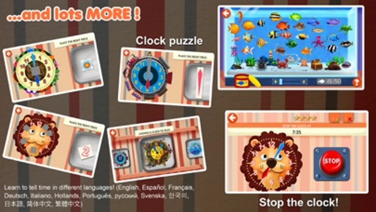 - Learn to tell the time in different languages! Multiple languages all recorded by native speakers (English, French, Spanish, Japanese, German, Swedish, Russian, Dutch, Portuguese, Norwegian, Danish, Korean, Chinese and Italian).