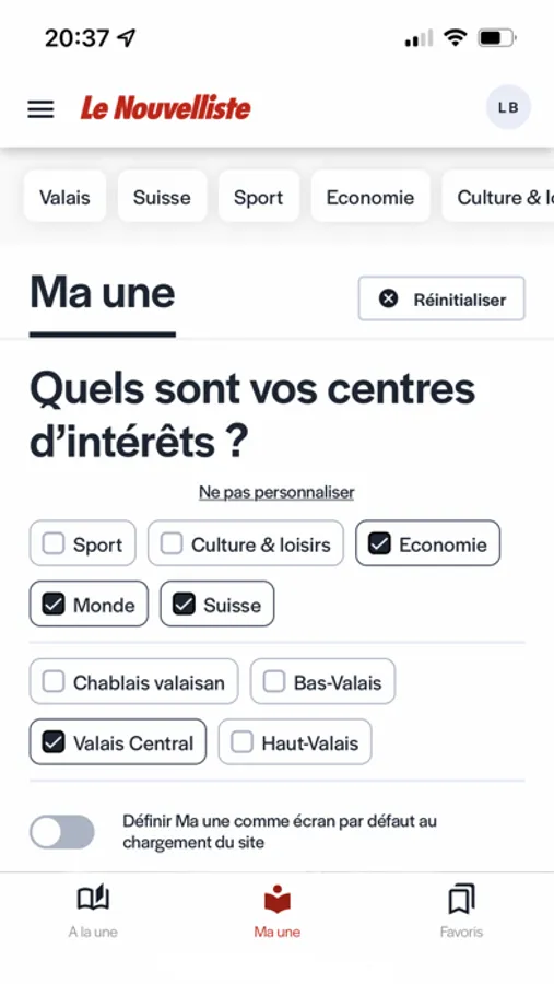 • personnalisez les thématiques qui vous intéressent le plus dans la section "Ma une"