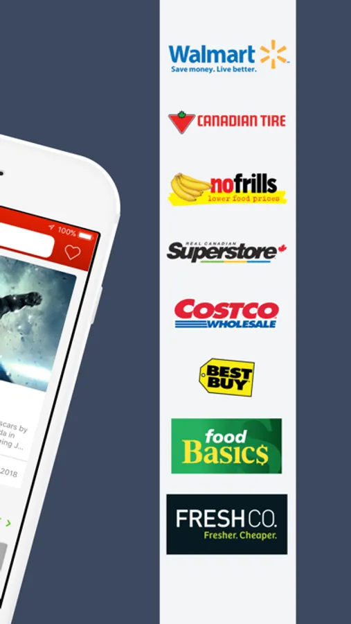 But wait there’s more — we have nearly 100 stores country wide in various categories such as grocery flyers from No Frills, and or electronic and home flyers from Best Buy, Costco, Canadian Tire and Walmart. Enjoy environmentally friendly flyers right on your device and snap up those deals directly in an instant.