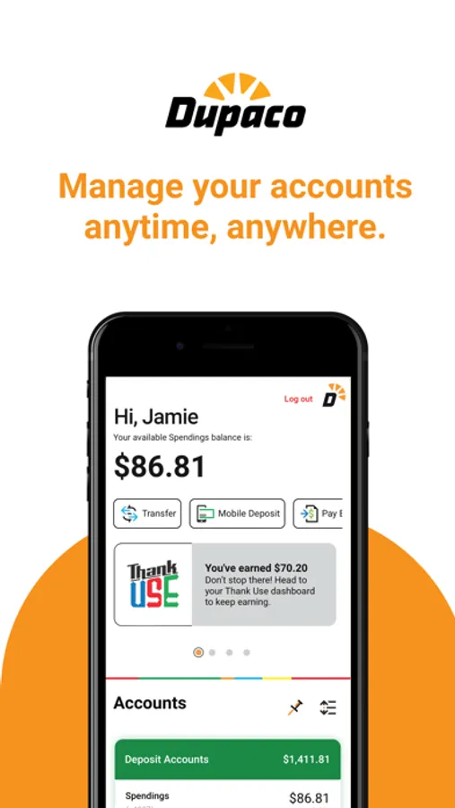 Dupaco’s free Shine Mobile Banking is a secure way to access and manage your accounts anytime, anywhere!
