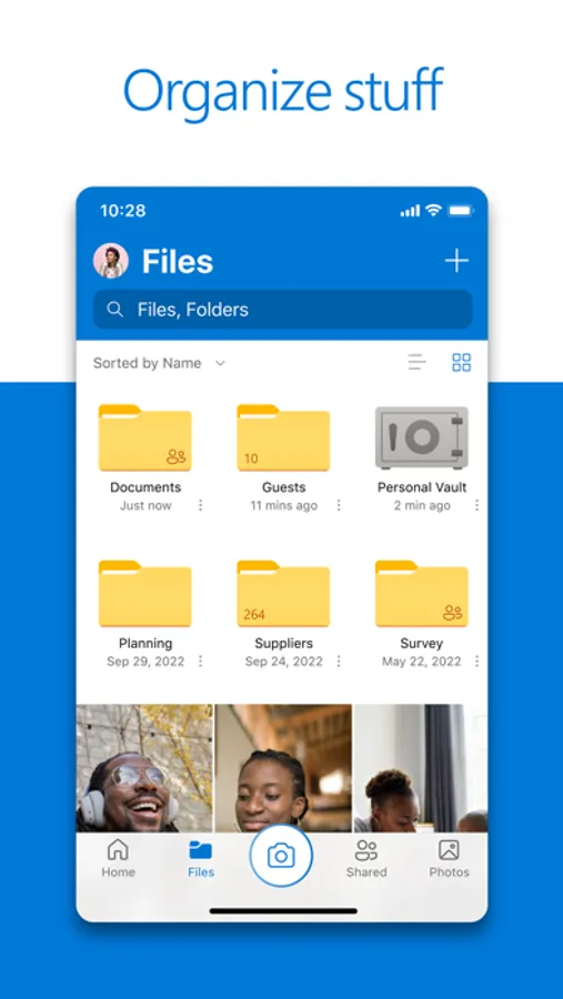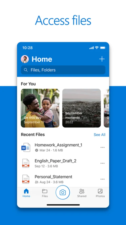 Microsoft OneDrive keeps your photos, videos, and files backed up, protected, synced, and accessible on all your devices. The OneDrive app lets you view and share OneDrive files, photos, and videos with friends and family. You can use the app to automatically back up your phone's photos and videos. Start with 5 GB of free cloud storage or upgrade to a Microsoft 365 subscription to get up to 1 TB.