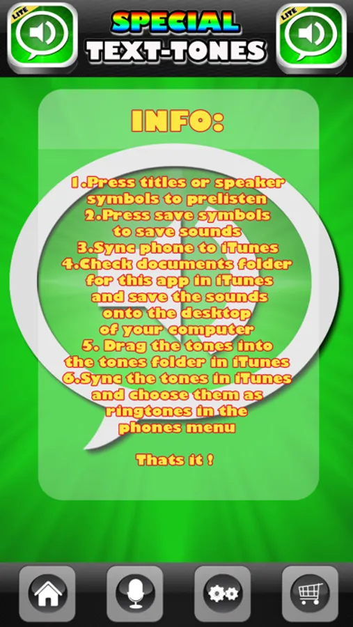 With Special Text Tones Lite you have the free version of Special Text Tones - the ultimate weapon to customize your text tones. You can choose between a selection of cool sound-effects, voice-alerts and musical tones to give your phone that special touch when you get a text message.