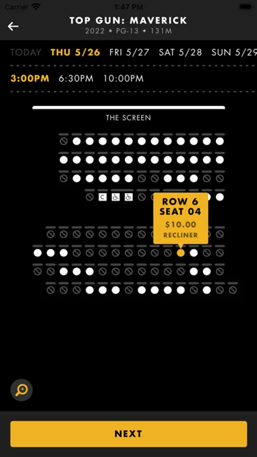 * Find your favorite seat. Easily flip through showtimes to see which seats are available before you buy your tickets.
