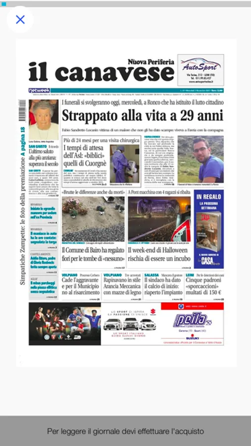 Puoi consultare gratuitamente la prima pagina o acquistare l'edizione completa. Sfogliando le pagine del giornale, ingrandendo i contenuti, ruotando il dispositivo, sarai libero di leggere in piena comodità e nella modalità preferita.