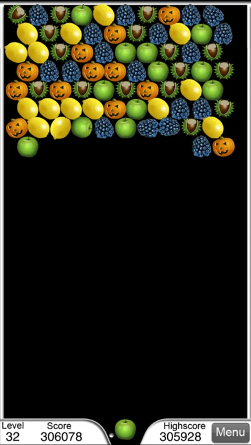 In normal mode you have all the time you want. Aim carefully, and make those bubbles pop. After a number of faults (shooting without making bubbles explode) a new row of bubbles will appear. The remaining numbers of faults will be shown as small white dots at the bottom of the screen. If you manage to clean all bubbles, you will be awarded a bonus score and get to the next level. The game ends if a bubble gets to the lowest row.