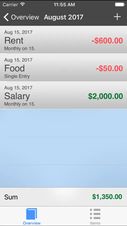 Initially, it is advisable to enter your monthly fixed costs (e.g. rent) and income (e.g. salary) to have them calculated as a flat rate by this clever app. This way you don't have to deduct your rent every month or add your salary...but rather this is done for you automatically. This app can automatically deduct or add a fixed amount monthly or annually, so you are spared a lot of work.