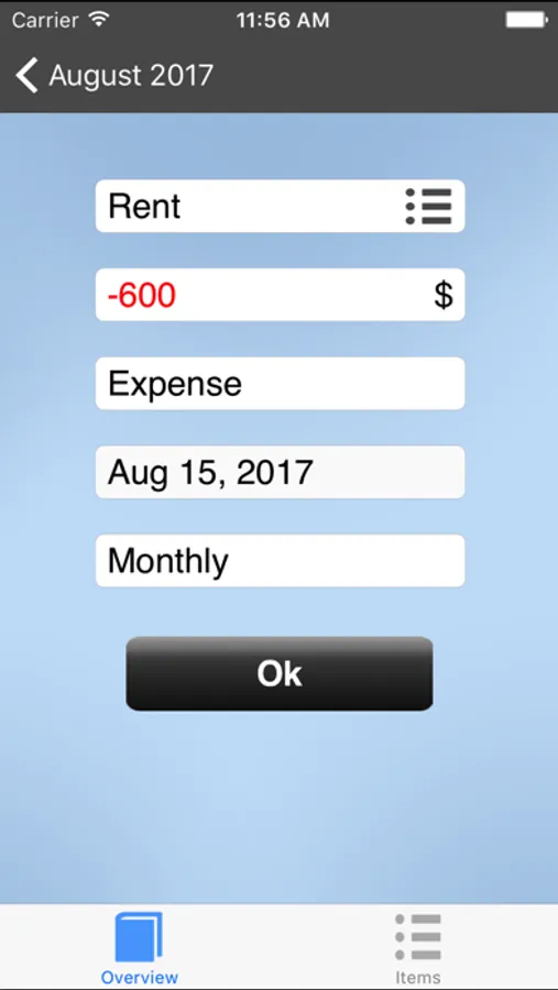 Next time you go shopping, you don't have to type in "Shopping" as this item will be suggested to you automatically. Simply add the amount you spent.