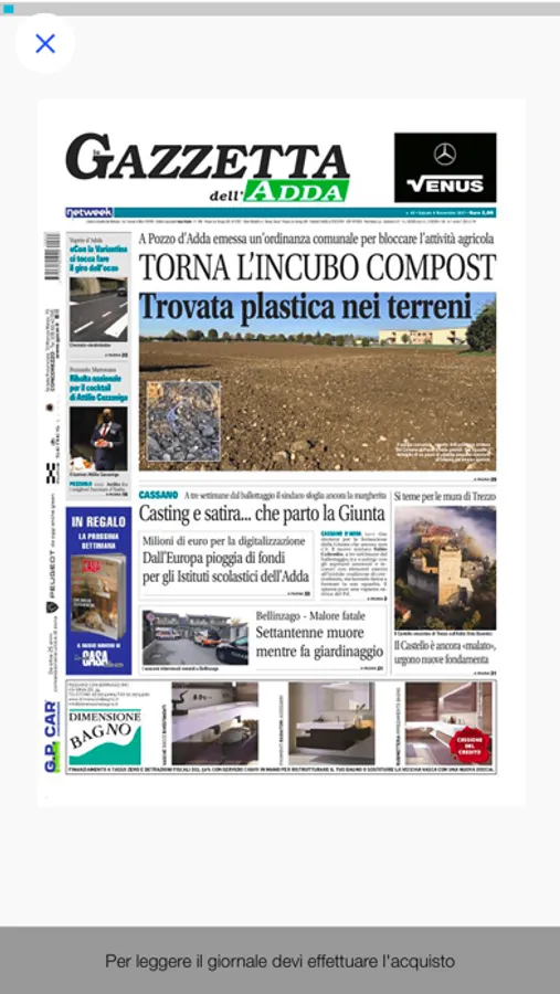 Puoi consultare gratuitamente la prima pagina o acquistare l'edizione completa. Sfogliando le pagine del giornale, ingrandendo i contenuti, ruotando il dispositivo, sarai libero di leggere in piena comodità e nella modalità preferita.