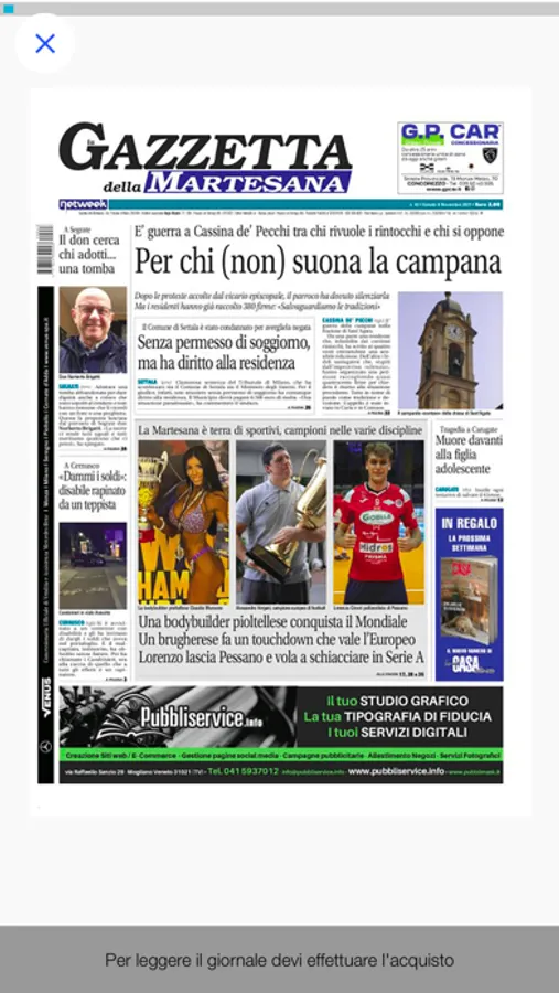 Puoi consultare gratuitamente la prima pagina o acquistare l'edizione completa. Sfogliando le pagine del giornale, ingrandendo i contenuti, ruotando il dispositivo, sarai libero di leggere in piena comodità e nella modalità preferita.