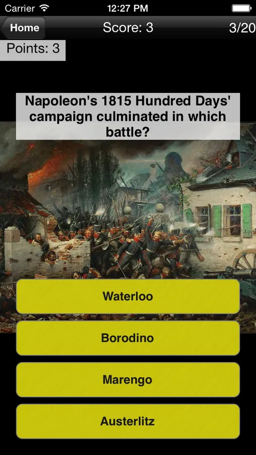 Test your knowledge of Napoleonic history in the lite version of this fun, fast-paced and exciting history quiz written by a college history professor. Die-hard history buffs and those looking to learn more about the dramatic wars and politics of the French Revolution and Napoleonic era will delight in this challenging app. How much do you know about the statesmen, battles, generals, conflicts, and weapons of the Napoleonic Wars?