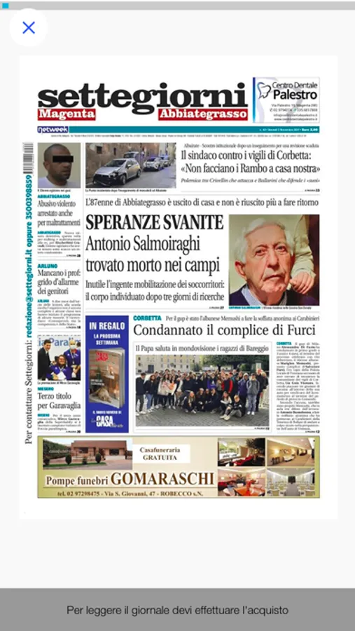Puoi consultare gratuitamente la prima pagina o acquistare l'edizione completa. Sfogliando le pagine del giornale, ingrandendo i contenuti, ruotando il dispositivo, sarai libero di leggere in piena comodità e nella modalità preferita.