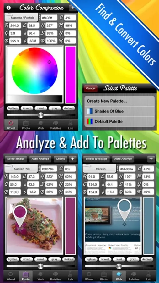 Throw out EVERY other color app you've owned and work FASTER with Color Companion, the ONLY color analyzer on the app store with native iPhone AND iPad custom tailored interfaces.