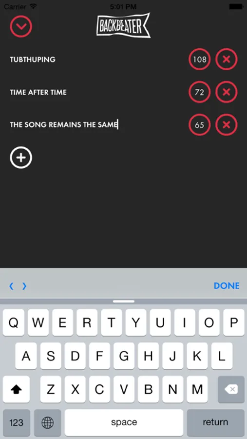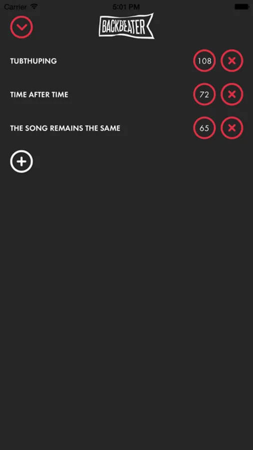 Backbeater allows drummers to monitor their tempo: either freestyle, or with a reference tempo. The Backbeater metronome can be set to your rhythm. It can discreetly tell you a tempo you tap out, and it can store lists of tempos, for when you're playing live.