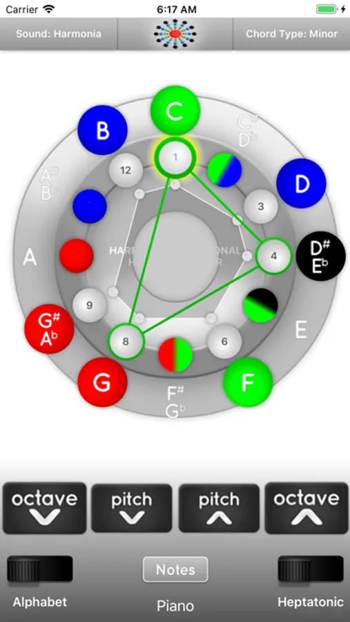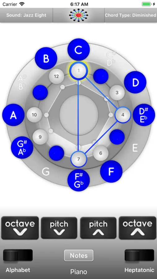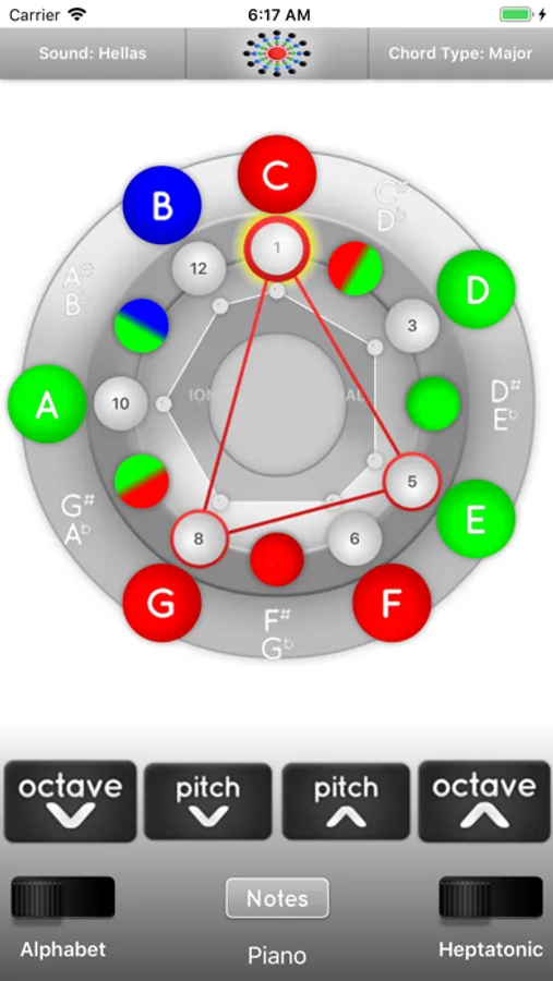 This App is the tool to study all: Triads-Pentatonic-Diatonic scales and can instantly transpose any scale or mode on a variety of instruments provided!