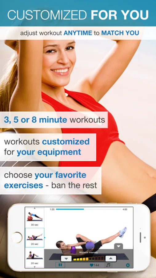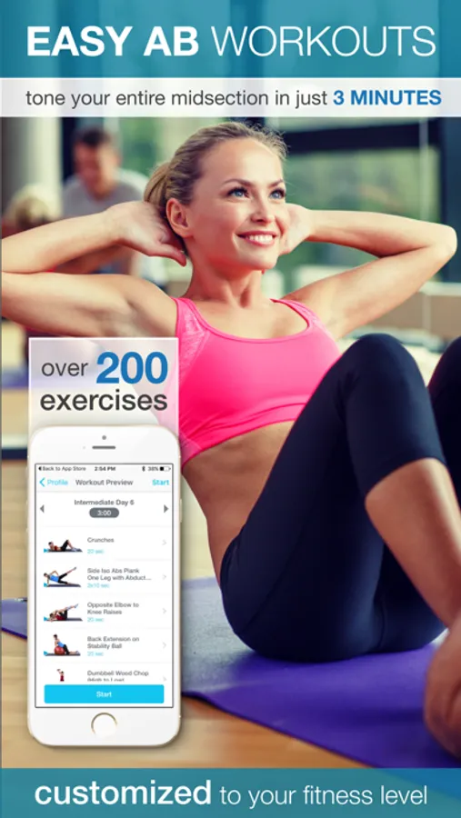 With Easy Ab Workouts you can do a quick 3-minute tone-up whenever you have a free moment, or really blast your abs with a killer 8 minute workout. Easy Ab Workouts provides the perfect core workout for both people starting their fitness journey and those who are trying to kick their regular sessions up a notch — most importantly, every workout is customized to you, from the equipment you use all the way down to how fast you do a crunch.