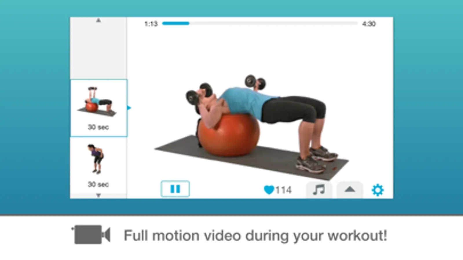 • Over 100 unique exercises. Each one includes a video and audio description to help you perfect your form.